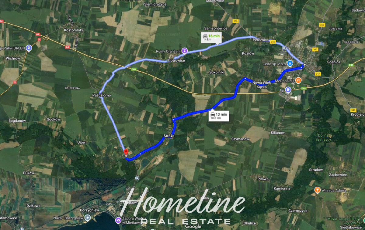 9 km do Kątów Wrocławskich (7 minut pociągiem)